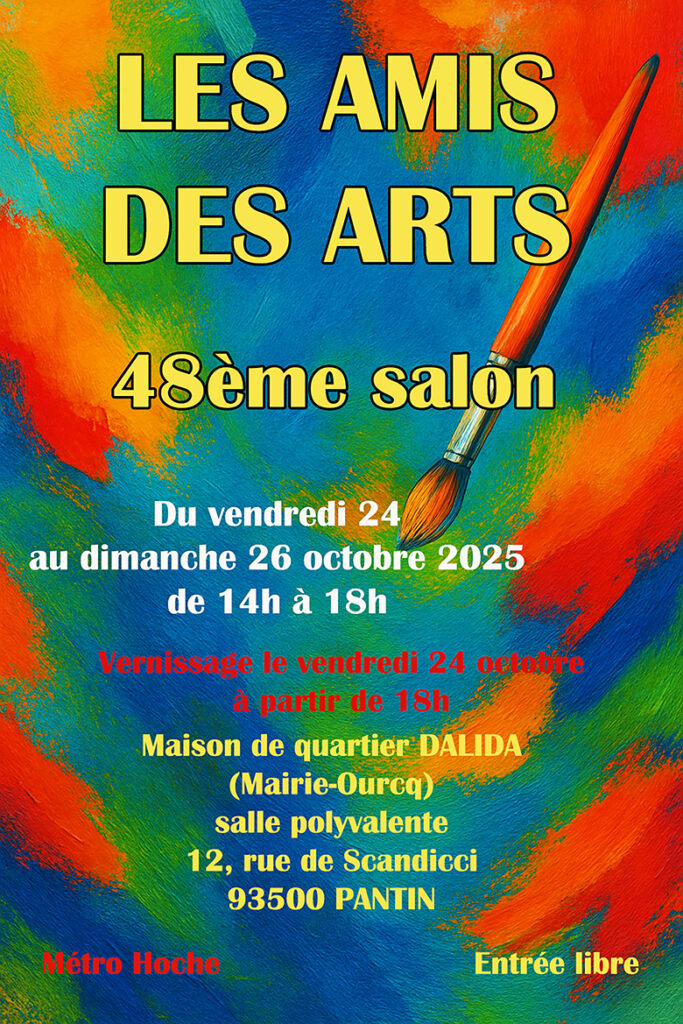 La prochaine exposition d’Automne se tiendra à la Maison de quartier Dalida (Mairie-Ourcq) du 24 au 26 Octobre 2025 de 14h à 18h.